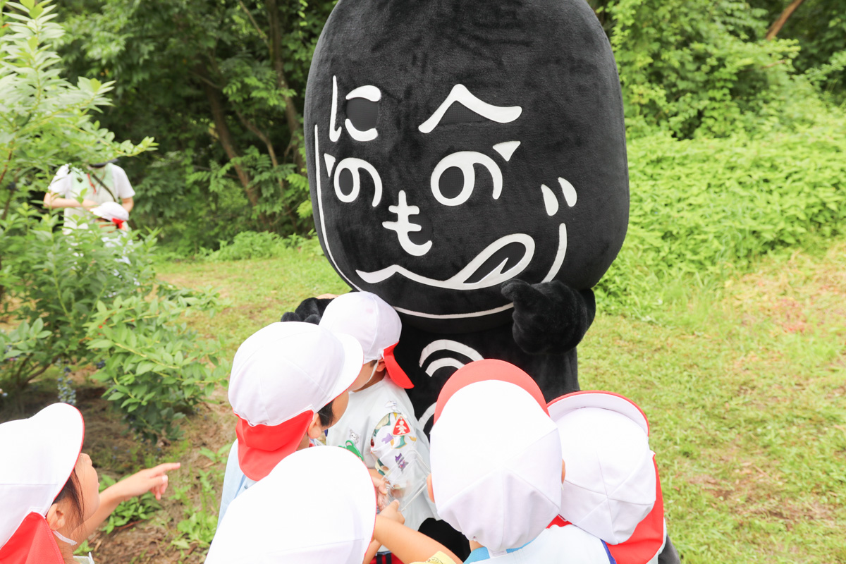 園児のみなさんが摘み取りをはじめてから「するる~ん」と登場したため、「へのへのもへじ!」「なんだ~!?」などと大騒ぎされていたフィクサーを見かねて、荒谷さんがフィクサーのことを紹介してくれました。