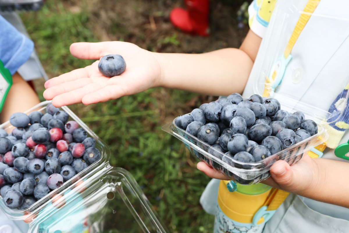 荒谷果樹園さんではたくさんのブルーベリーを栽培しており、自分たちでは取り切れない分を市内の園児さんたちに収穫体験としてご提供いただいているそうです。