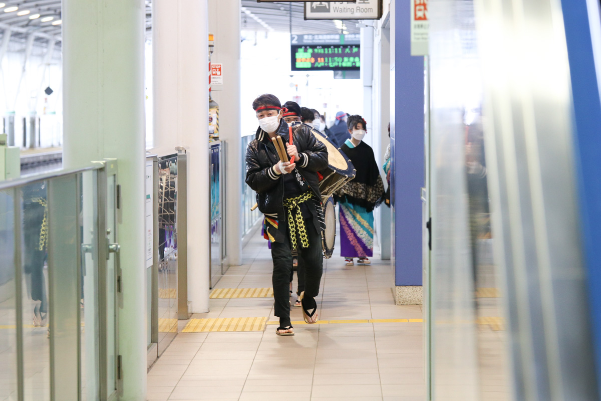 2022年12月3日、二戸駅の新幹線ホームにて、「東北新幹線-盛岡~八戸-開業20周年記念事業」に参加し、特別列車(はやて号)通過の際のお出迎えをいたしました!